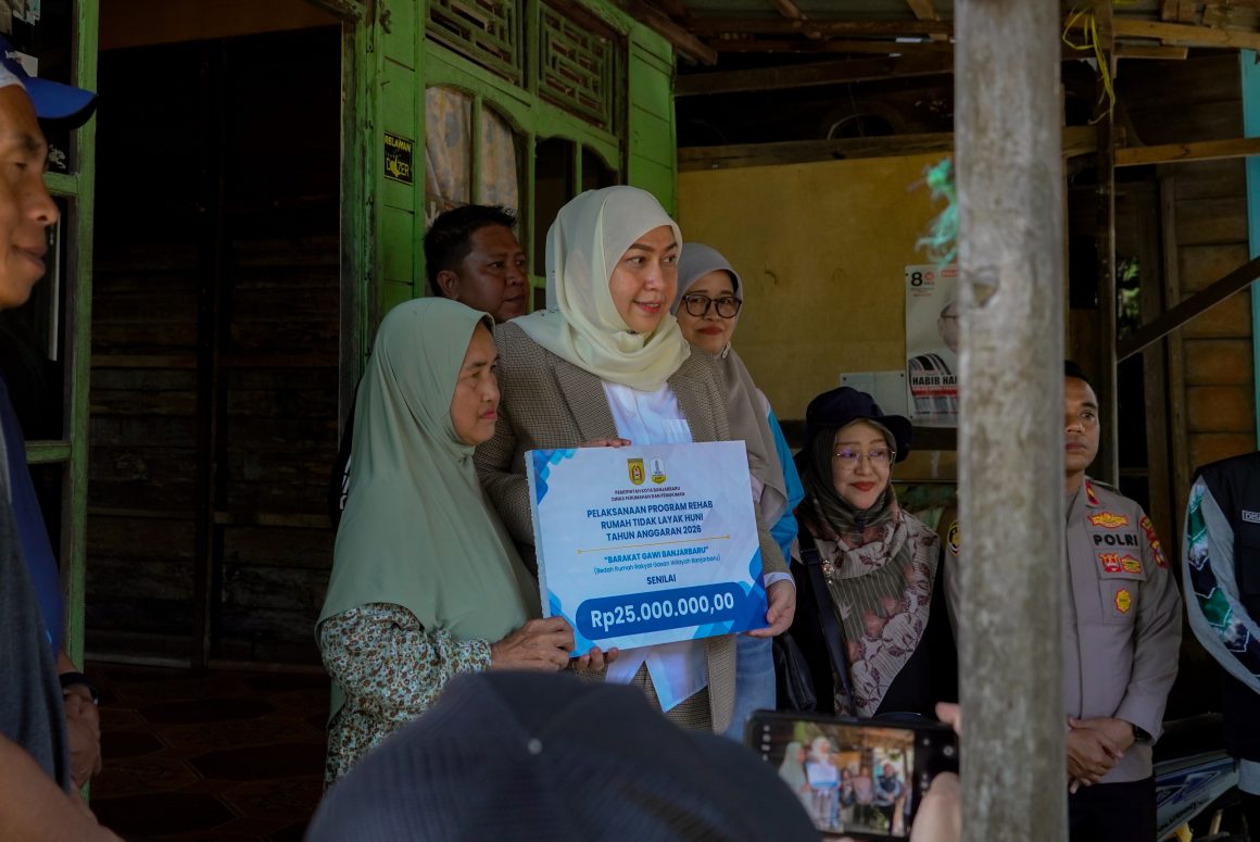Wali Kota Banjarbaru, Erna Lisa Halaby, turun langsung meninjau pelaksanaan program tersebut di RT 23, Kelurahan Cempaka, Jumat (10/04/2026). Dalam kesempatan itu, ia juga menyerahkan bantuan secara simbolis kepada lima keluarga penerima manfaat di Kecamatan Cempaka.