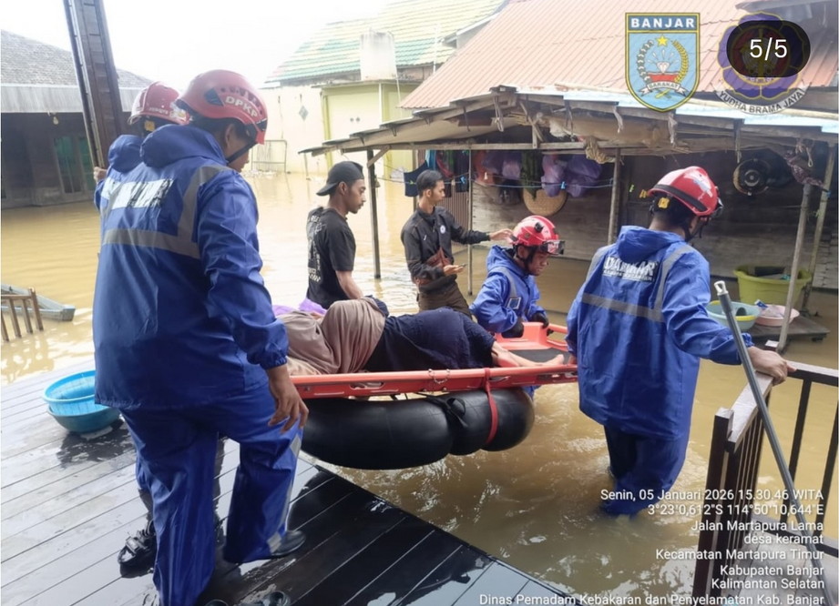 KBK.News, MARTAPURA — Respon cepat kembali ditunjukkan Dinas Pemadam Kebakaran dan Penyelamatan (DPKP) Kabupaten Banjar dalam menangani aduan masyarakat. Senin (5/1/2026) sore, tim DPKP berhasil mengevakuasi seorang warga dalam kondisi kritis yang terjebak banjir di Kampung Keramat, Jalan Martapura Timur, Kecamatan Martapura Timur.