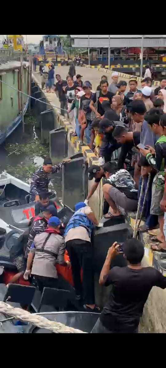 Penemuan itu disambut haru oleh para relawan dan warga yang sejak awal memenuhi area dermaga untuk membantu proses pencarian.