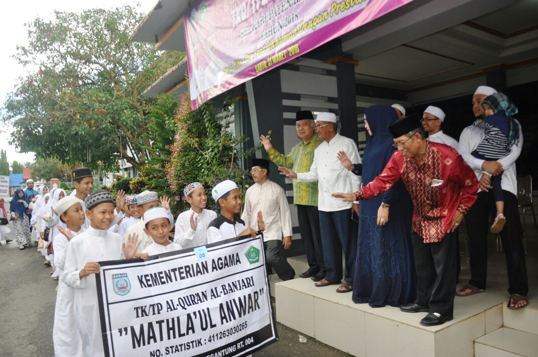 Martapura – Festival Santri Tahun 2018 Taman Pendidikan Al-Qur’an (TPQ) Al-Banjari yang diikuti 1406 santri dari 80 Taman Pendidikan Al Quran se-Kabupaten Banjar ramaikan kegiatan ini di  Martapura(31/03/2018).