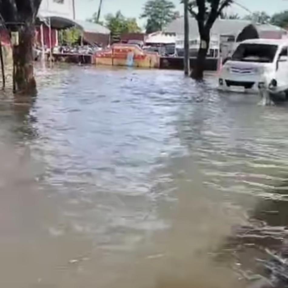 Genangan air terlihat menutup sebagian besar badan jalan, sehingga menyulitkan pengendara yang memaksakan diri melintas. Sejumlah motor dilaporkan mati mesin akibat nekat menerobos banjir.