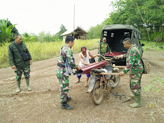 Personil TNI AD dari Kodim 1006 Martapura, Serda Mustaqim bersama anggota lainnya dengan mengendarai motor memasok sejumlah bahan bangunan yang akan dipergunakan pada kegiatan TMMD ke -102 di Desa Panyiuran, Kecamatan Pengaron. Untuk mencapai desa ini Angggota TNI ini harus melewati jalan yang cukup terjal dan berlumpur, namun tidak menyurutkan langkah mereka dalam menjalankan tugas negara, yakni membantu masyarakat di pedesaan.