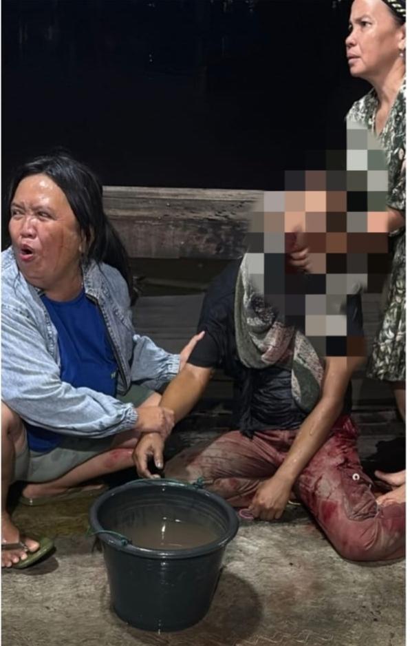 Dalam video yang beredar, korban terlihat dalam kondisi bersimbah darah dan terduduk bersandar di pagar.