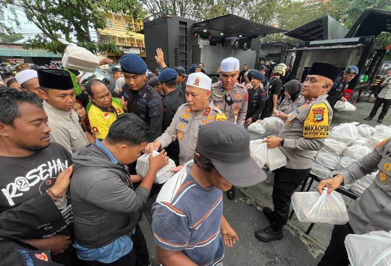 KBK.News, BANJARMASIN– Polda Kalimantan Selatan (Kalsel) membagikan 1.400 paket makanan dan takjil gratis kepada warga yang melintas di kawasan Lapangan Kamboja, Banjarmasin, Sabtu (14/3/2026).