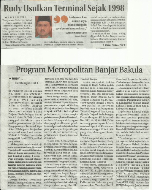 Berikut ini Kliping Dari salah satu Surat Kabar di Kalsel terkait Terminal Induk Di Km. 17 Gambut kabupaten Banjar KABUPATEN BANJAR