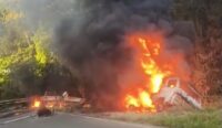 Kecelakaan Maut di Kelumpang Barat Kotabaru , Mobil Langsir Minyak dan Box Terbakar, Satu Orang Meninggal Dunia