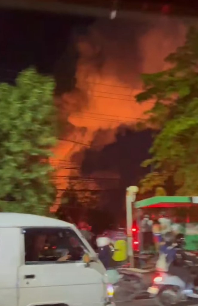 Dari video yang beredar di media sosial, api tampak membumbung tinggi dan menerangi area sekitar. Beberapa warga terlihat berkumpul di pinggir jalan sambil memantau kondisi, sementara relawan pemadam kebakaran mulai bergerak menuju lokasi.
