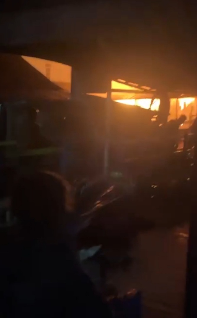 Dalam rekaman video yang beredar di media sosial, kobaran api tampak menyala terang dari sebuah bangunan,