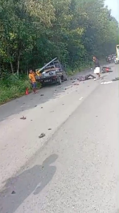Insiden tersebut melibatkan sepeda motor dan mobil pikap pengangkut material bangunan, yang diduga bertabrakan langsung (adu banteng) di ruas jalan Mandiangin.