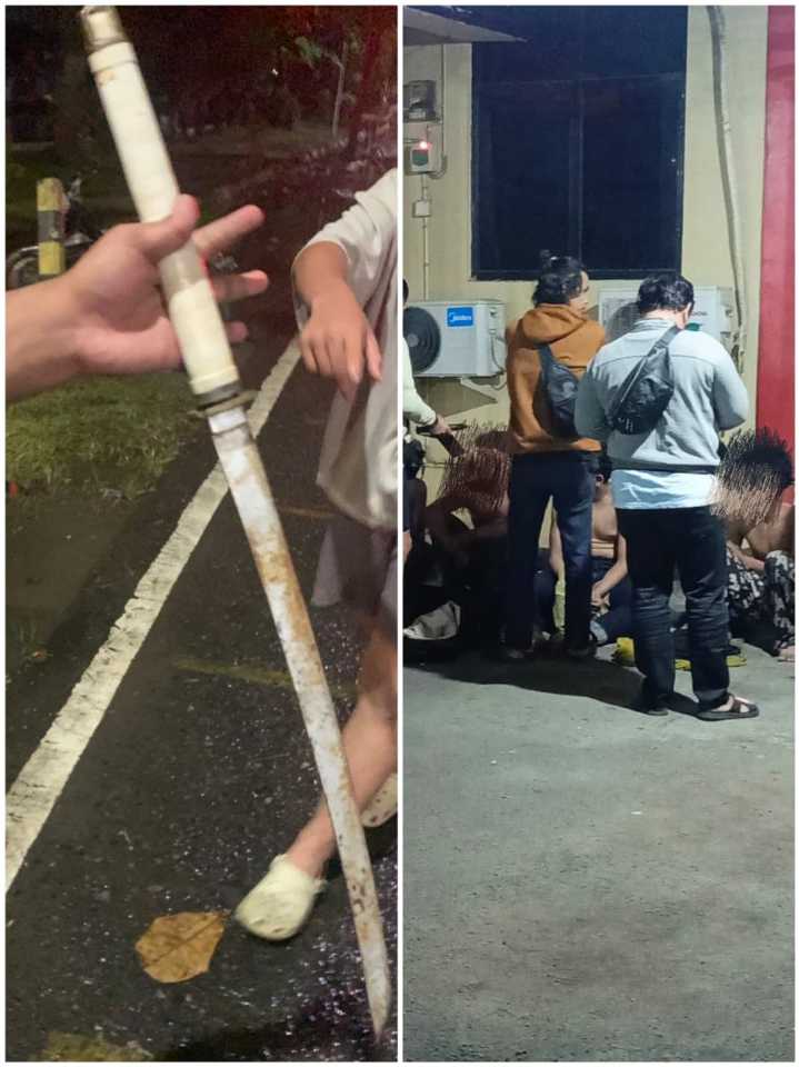 Ironisnya salah satu remaja tersebut ada membawa satu sajam jenis Samurai dengan panjang sekitar 80 Cm.