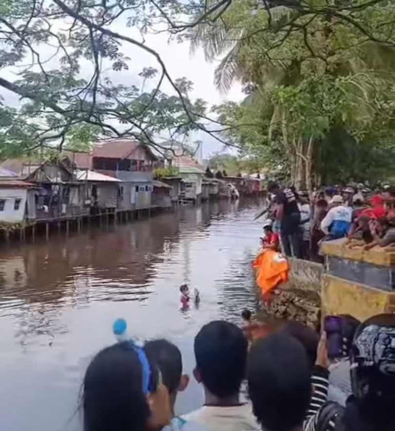 Temuan tersebut pertama kali diketahui warga yang melihat tubuh korban berada di dekat siring semen sungai. Kejadian itu langsung menarik perhatian warga sekitar yang berdatangan ke lokasi.