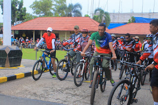 Martapura – Polres Banjar bersama Kodim 1006 Martapura berserta jajaran menggelar acara olahraga sepeda santai Gowes NKRI