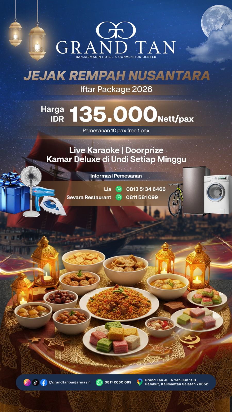 KBK.NEWS, Banjarmasin – Menyambut bulan suci Ramadan 2026, Grand Tan Banjarmasin Hotel & Convention Center mempersembahkan program Ramadhan Iftar Package bertajuk “Jejak Rempah Nusantara”.