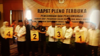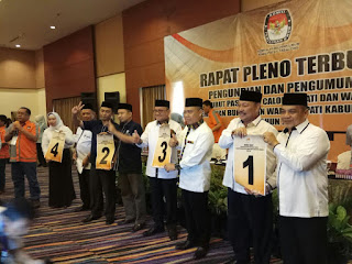 Setelah kemarin dilakukan rapat pleno terbuka penetapan Calon Bupati dan Wakil Bupati Tabalong peserta Pilkada 2018,maka hari ini dilanjutkan dengan pengundian nomor.