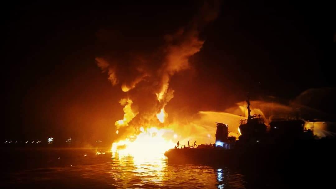Kapal Tanker Terbakar di Dekat Depo Pertamina di Banjarmasin
