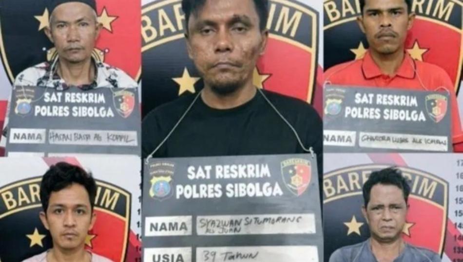 Kelima tersangka tersebut adalah Chandra Lubis (38), Rismansyah Efendi Caniago (30), Zulham Piliang (57), Hasan Basri (46), dan Syazwan Situmorang (40). Dalam foto yang diterima redaksi, mereka tampak berdiri berjejer dengan tangan terborgol di ruang Satreskrim Polres Sibolga.