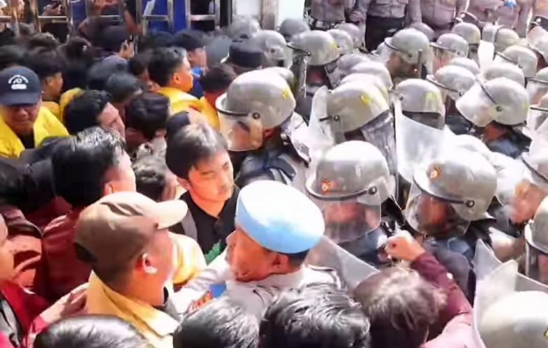 Upaya tersebut memicu saling dorong antara mahasiswa dan aparat kepolisian yang melakukan pengamanan.