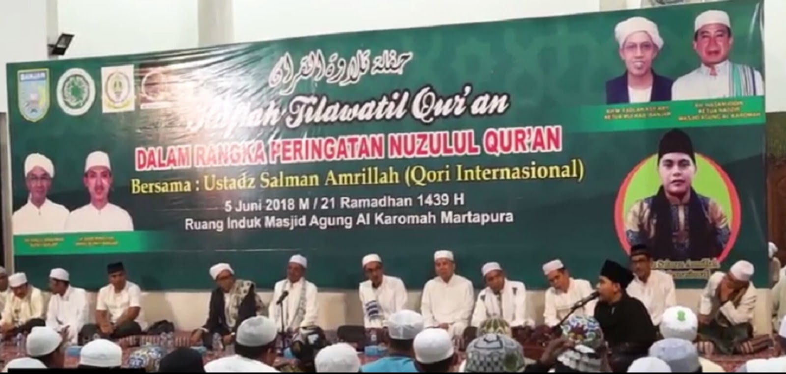 Kegiatan Peringatan Nuzulul Qur’an diselenggarakan oleh Pemerintah Kabupaten Banjar bekerjasama dengan Majelis Ulama Indonesia Kabupaten Banjar, LPTQ Kabupaten Banjar serta pengrus Masjid Al-Karomah Martapura, dengan menghadirkan qori terbaik internasional Ustadz Salman Amrillah serta sejumlah qori nasional asal Kabupaten Banjar. (MC-Kominfo-Kab.Banjar/ogb/dani)