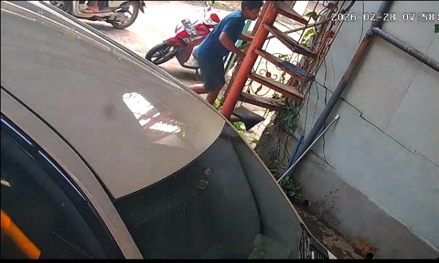 Aksi tersebut terekam kamera pengawas (CCTV) dengan durasi sekitar 19 detik. Dalam rekaman terlihat seorang pria datang menggunakan sepeda motor berwarna merah. Pelaku mengenakan celana pendek dan kaos biru, lalu memasuki area rumah dan menaiki tangga menuju bagian atas bangunan saat situasi lingkungan relatif sepi.