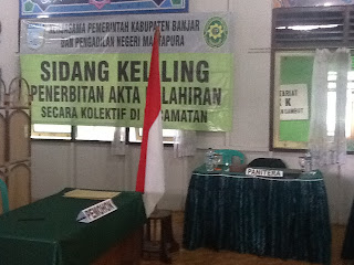 Untuk mendapatkan akte kelahiran bagi warga yang berumur lebih dari satu tahun harus melalui sidang di pengadilan negeri. Namun jika melalui jalur pengadilan negeri secara reguler baiyanya cukup mahal bagi masyarakat yang kurang mampu. untuk mengantisipasi hal tersebut pemerintah Kabupaten Banjar telah bekerjasama dngan Pengadilan Negeri Martapura menggelar pembuatan akte kelahiran secara kolektif yang dikenal dengan sidang Keliling Pembuatan Akte Kelahiran.
