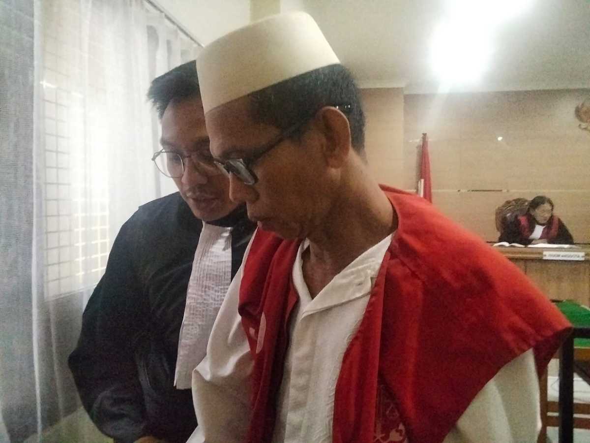 Terdakwa Syamson terlihat tertunduk sepanjang pembacaan tuntutan.