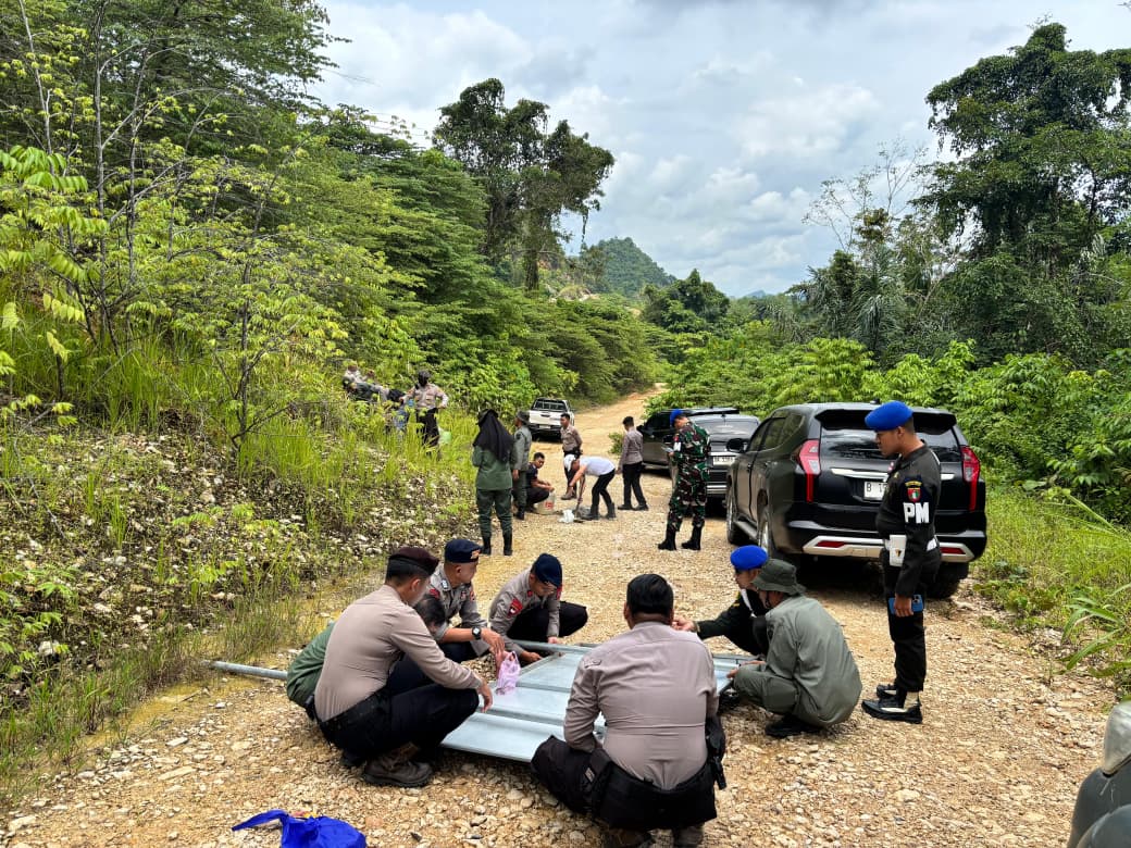 Personel Gabungan dan PT AGM Pasang Papan Larangan Tambang Ilegal di Batu Bini