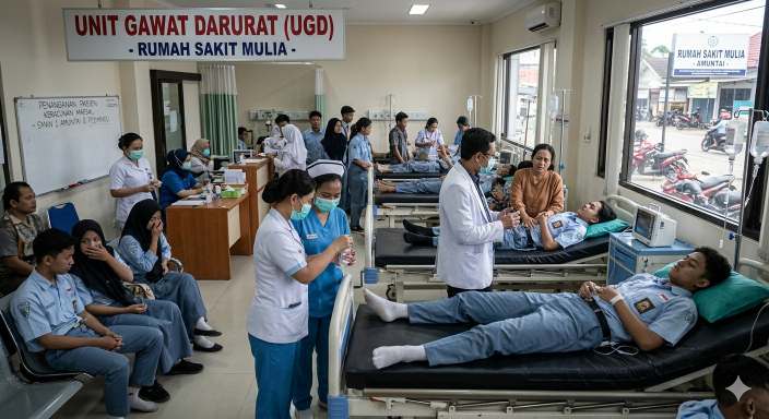 Tragedi ini ternyata tidak hanya menimpa lingkungan sekolah. Laporan serupa muncul dari peserta posyandu di Kelurahan Amuntai Tengah, yang membawa total korban mencapai 61 orang. Menanggapi situasi darurat ini, Sekretaris Daerah HSU, Adi Lesmana, langsung meninjau para korban yang tengah berjuang pulih di Rumah Sakit Mulia.