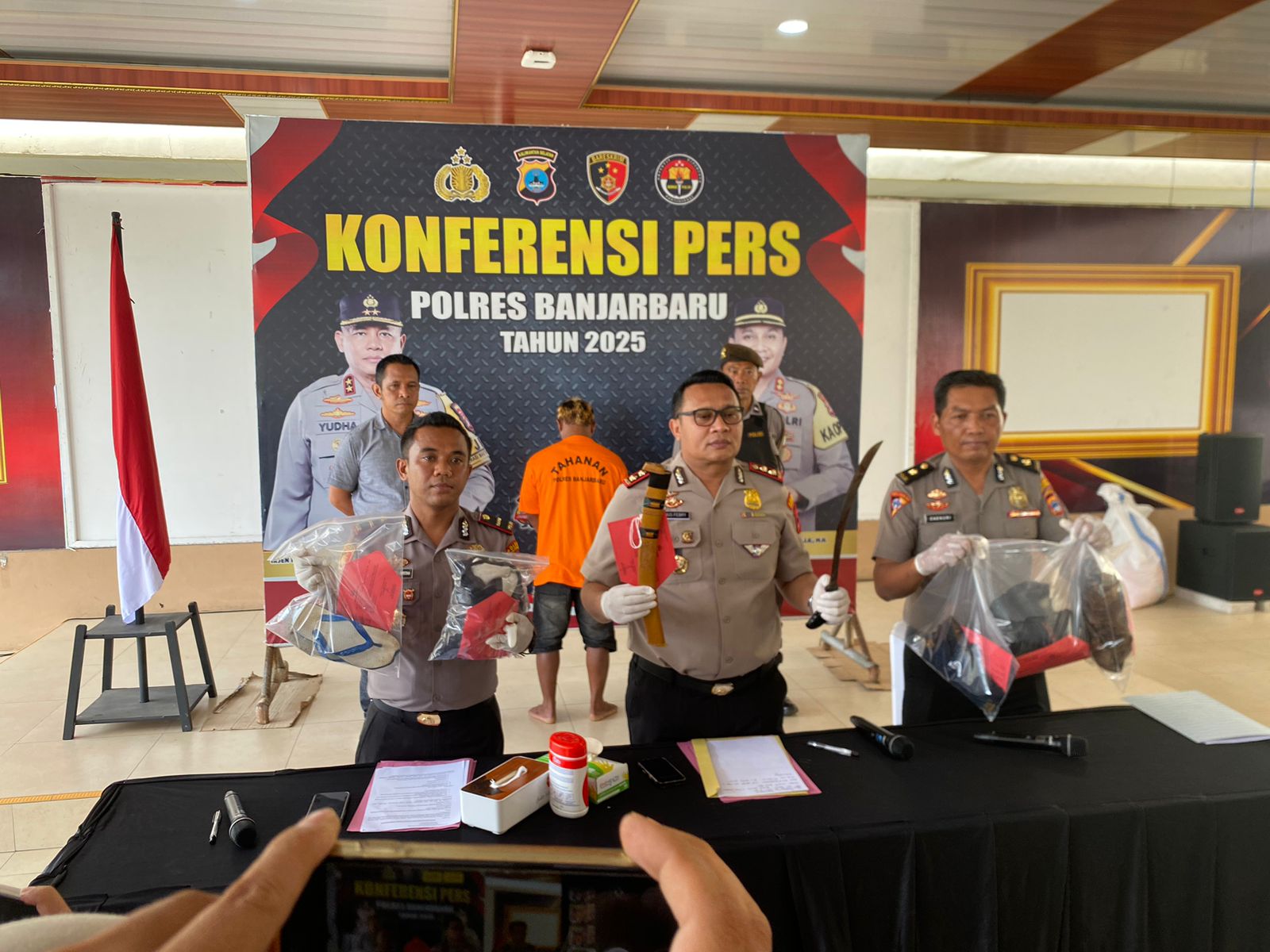 Namun, kurang dari 24 jam pelaku berhasil diamankan kepolisian. Saat Press Rilis, Kapolres Banjarbaru AKBP Pius X Febry Aceng Loda mengungkapkan, peristiwa berdarah yang terjadi sekitar pukul 16.30 Wita itu dipicu oleh persoalan sepele korban yang dalam kondisi mabuk disebut-sebut menantang pelaku untuk berkelahi.