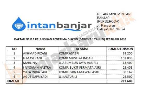 PTAM Intan Banjar Umumkan Pelanggan Beruntung Dapat Program Deposit Februari 2026