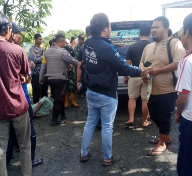 Di sekelilingnya terlihat sejumlah warga yang mengamankan situasi.