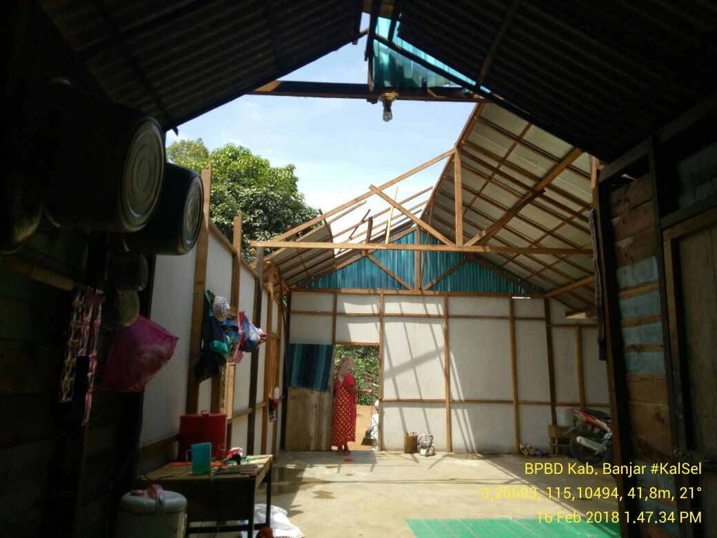 Berdasarkan data dari Badan Penanggulangan Bencana Daerah ( BPBD) Kabupaten Banjar tercatat 10 rumah penduduk mengalami kerusakan dengan rincian sebagai berikut :
