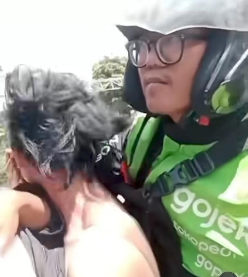 Seorang pengemudi ojek online yang berada di lokasi kemudian membantu mengamankan pelaku sambil memberikan penjelasan kepada warga agar situasi tetap terkendali.