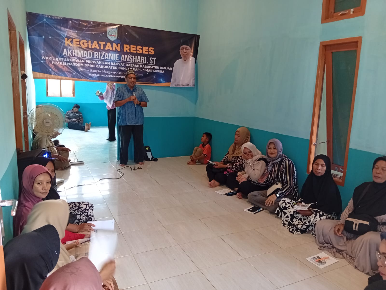 KBK.News, MARTAPURA – Aspirasi masyarakat kembali menjadi perhatian Wakil Ketua II DPRD Kabupaten Banjar dari Fraksi NasDem, Akhmad Rizanie Anshari, saat melaksanakan reses di Perumahan Arwana Residen 10, Kelurahan Indrasari, Jumat (7/11/2025).