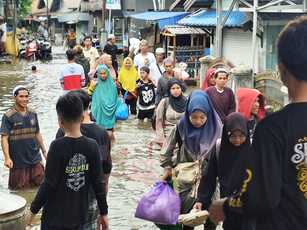 Namun kondisi banjir yang terus mengepung kawasan Murung Kenanga menyebabkan akses kendaraan roda dua tak lagi bisa dilalui. Akibatnya, para jemaah harus melanjutkan perjalanan dengan berjalan kaki menuju Murung Keraton, tepatnya di sekitar Pasar Batuah Martapura.