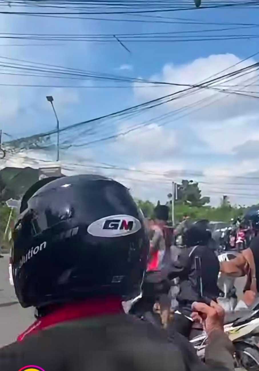 Sejumlah pengendara terlihat berhenti untuk melihat kejadian, sementara seorang perempuan tampak histeris di lokasi.