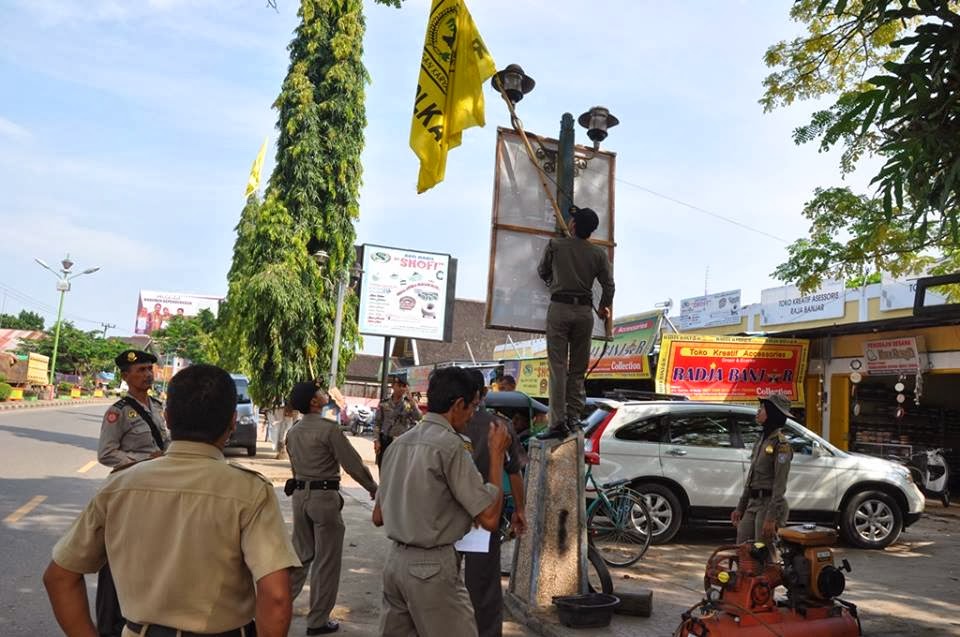 Sementara itu Kasat Pol PP Kabupaten Banjar Ahmadi yang juga merupakan Koordinator penertiban atribut kampanye itu mengatakan , bahwa kegiatan ini dilaksanakan untuk memberikan peringatan kepada Partai Politik dan Calon anggota Legislatif agar tidak lagi memasang atribut mereka di daerah yang tidak diijinkan , seperti di Rumah Dinas Bupati dan Wakil Bupati dan sekelilingnya, Gedung /Kantor milik Pemerintah ,TNI, POLRI ,BUMN dan BUMD, Sekolah dan Kampus, Tempat Ibadah ,Rumah Sakit atau tempat-tempat pelayanan kesehatan,Monumen bersejarah,rambu-rambu lalu lintas jalan umum,lingkup pekarangan terminal umum/bus,jembatan, median jalan, tiang atau gardu listrik,di depan kantor sekretariat partai politik lain,Taman Kota, Stadion Demang Lehman serta gedung yang melekat atau satu komplek dengan gedung pemerintah.