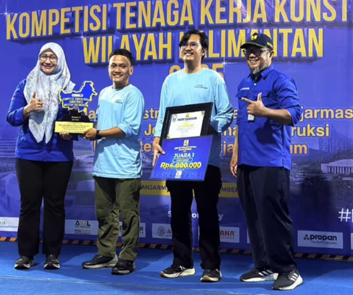 Piagam penghargaan serta piala kemenangan diserahkan langsung oleh Kepala Balai Jasa Konstruksi Wilayah V Banjarmasin, Dwi Retno Wardhani, sebagai bentuk apresiasi atas kemampuan teknis dan profesionalisme para peserta.