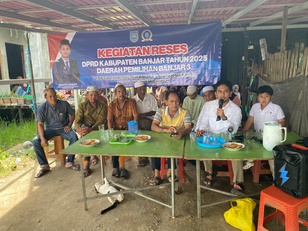 KBK.News, MARTAPURA – Anggota Komisi IV DPRD Kabupaten Banjar, Wahyu Akbar, menggelar kegiatan reses di Desa Tampang Awang, Kecamatan Tatah Makmur, untuk menyerap langsung aspirasi masyarakat, khususnya kalangan ibu-ibu yang hadir dengan antusias, Sabtu (8/11/2025).