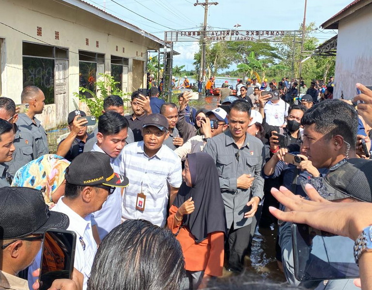 Usai dari posko, Gibran melanjutkan peninjauan ke sejumlah titik banjir yang tidak jauh dari lokasi pengungsian untuk melihat langsung kondisi warga serta dampak yang ditimbulkan oleh bencana tersebut.