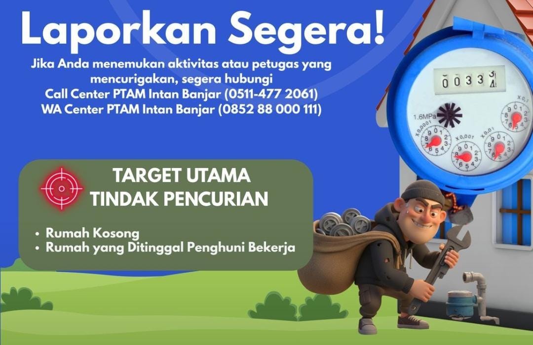 KBK.News, BANJARBARU – PT Air Minum (PTAM) Intan Banjar kembali mengingatkan masyarakat untuk meningkatkan kewaspadaan menyusul maraknya pencurian meter air di wilayah pelayanan. Modus pelaku kerap berpura-pura menjadi petugas resmi perusahaan.